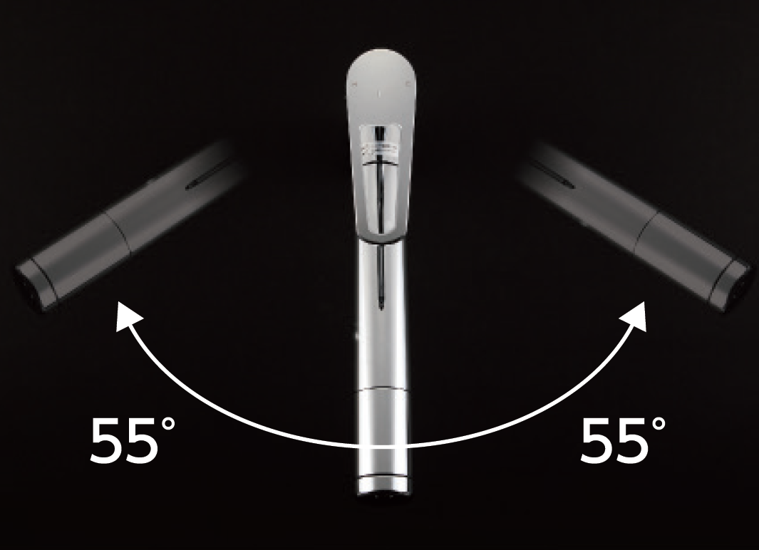 ・吐水パイプの回転を110°(左:55°,右:55°)で