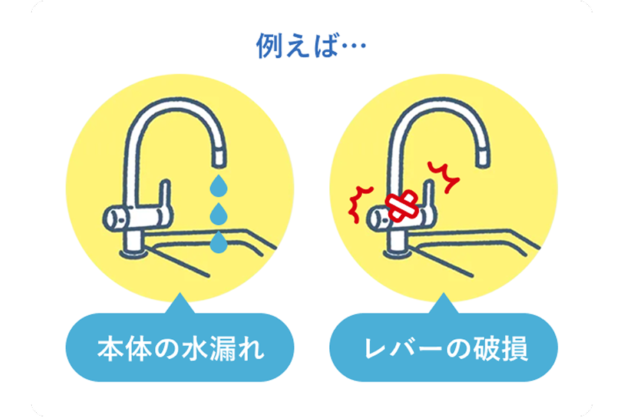 その他にも、シンク下ホースの水漏れ、本体破損をした場合等、保証内の内容であれば本体の補修又は本体の部品交換ができます。