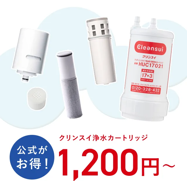 クリンスイの浄水カートリッジはタイプによって3か月ごと、1年ごとといった取替時期の目安が決められています。その期間が過ぎると、使用水量・水質・水圧などによって異なりますが、浄水能力が低下する場合があります。